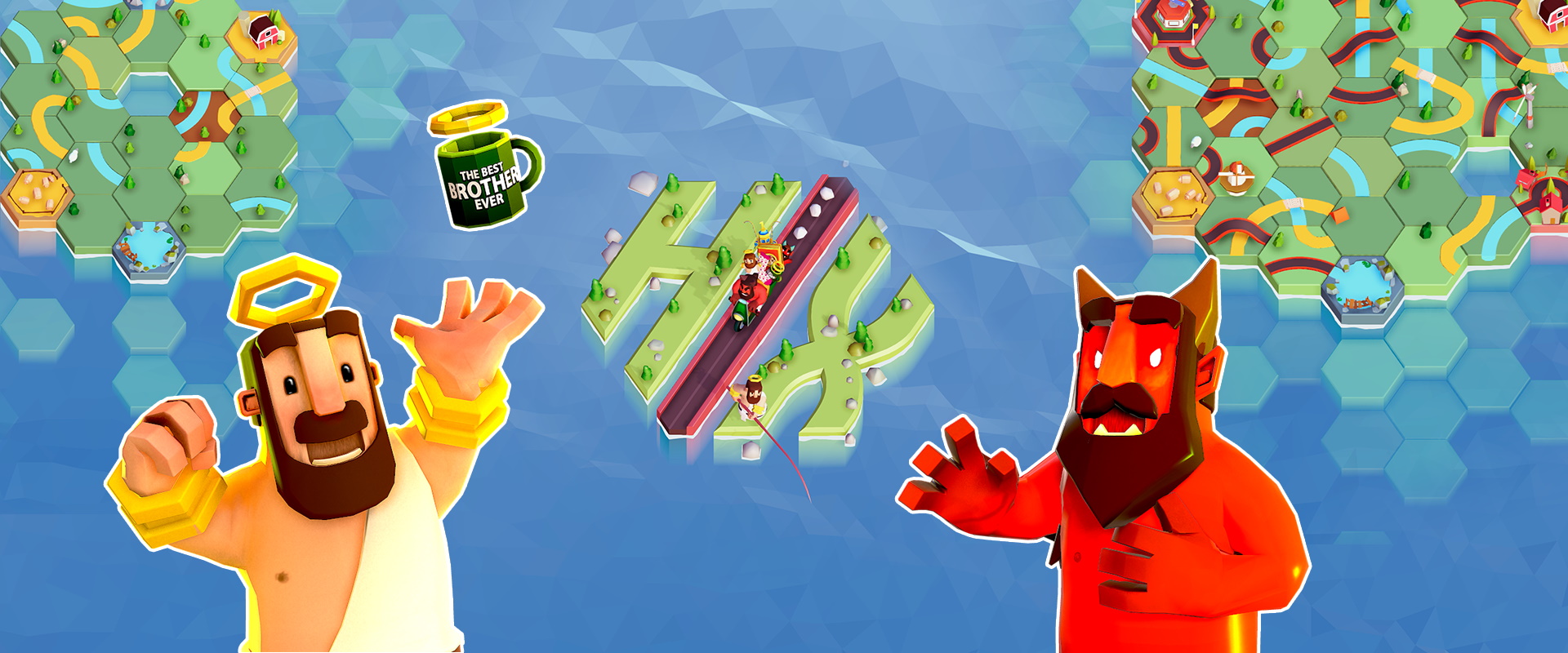Get ready to meet the godlike brothers Hix and Dix! Normally, they are the best of friends, but something has turned the devilish Dix against his friendly older brother. Now he is tearing up roads and rivers wherever he goes, making a mess of all the beautiful islands Hix created. What on earth could have gotten into him?